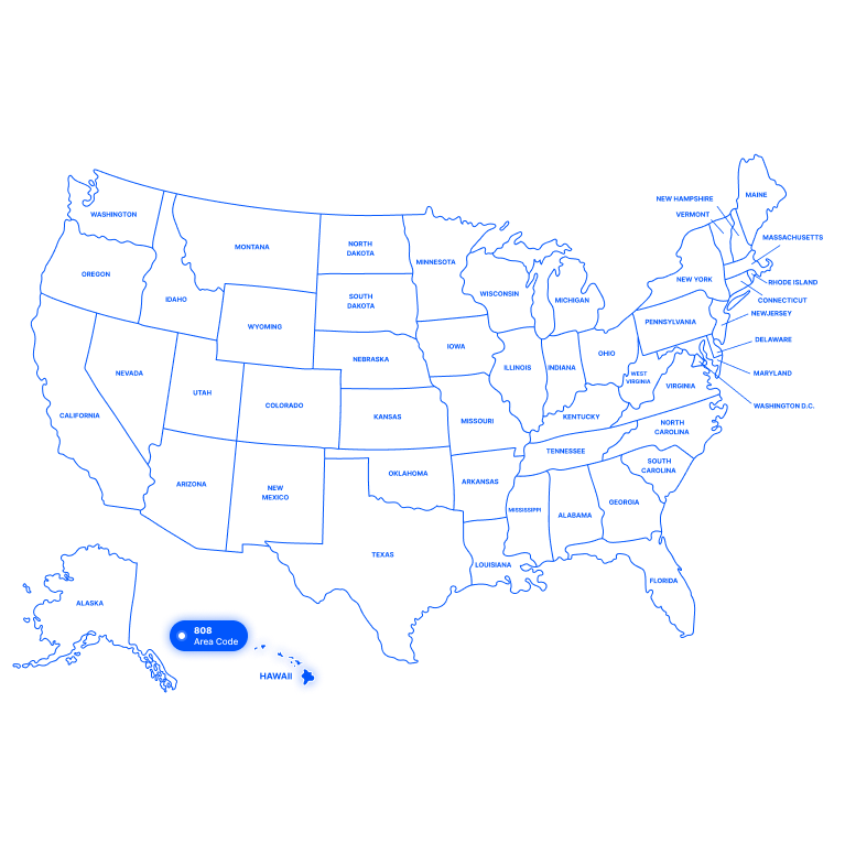 The 808 area code serves the entire state of Hawaii, covering major islands like Oahu, Maui, Hawaii Island (Big Island), Kauai, Molokai, and Lanai. This single area code connects all the Hawaiian Islands. Hawaii is a thriving market, known for its strong tourism, unique culture, and growing local businesses. Establishing a local presence with an 808 area code phone number helps your business connect with residents and visitors, building trust in this special island community.